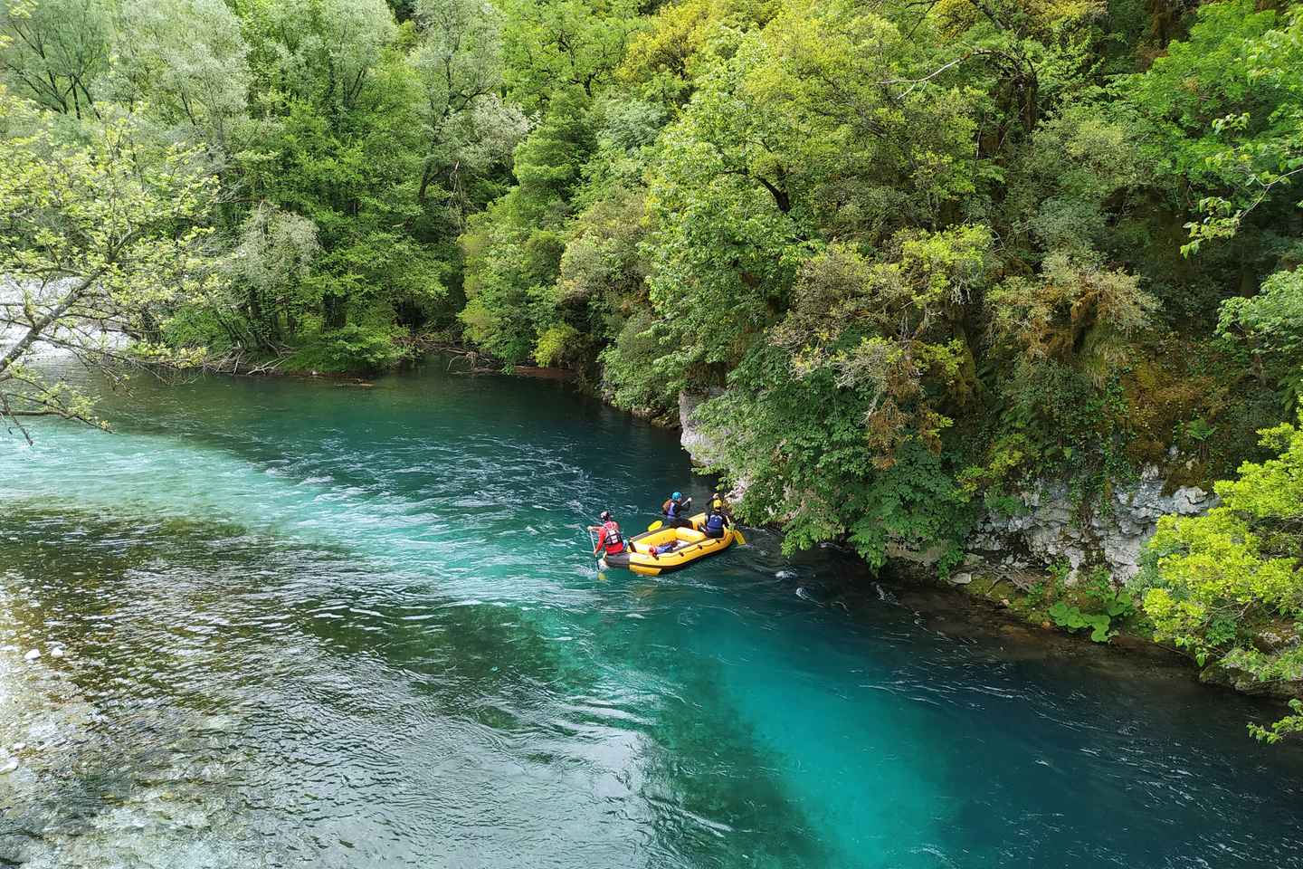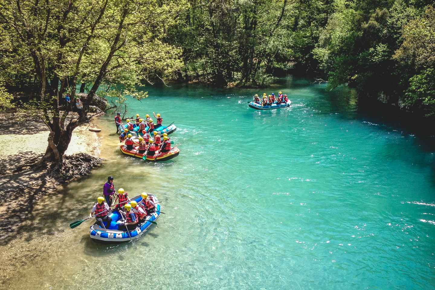 Discover the thrill of rafting on the Voidomatis River in the stunning Epirus region of Greece. This easy rafting adventure begins at the Trekking Hellas base in Klidonia, conveniently located between Aristi and Papingo villages. Friendly guides will greet you at 10:00am and provide all the necessary safety equipment to ensure a comfortable and secure experience.