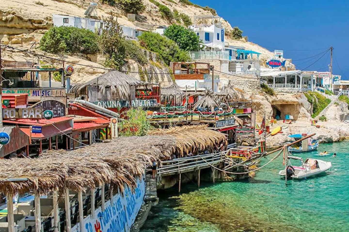 Next, discover the charming coastal village of Matala. With its golden sandy beach and iconic cliff-carved caves, it's an ideal spot for swimming, relaxing, or exploring the vibrant streets and historical sites.
