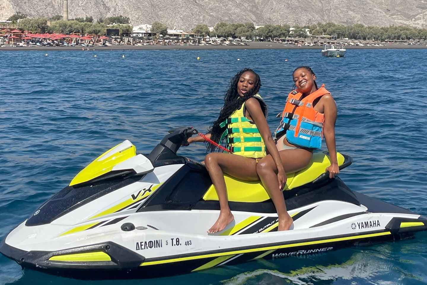 Feel the rush of adventure as you ride a Yamaha VXS SPORT 130HP jet ski along the stunning coastline of Santorini, Greece. This experience lets you explore the crystal-clear waters around Perissa, Perivolos, and St George beaches, offering both excitement and breathtaking island views.