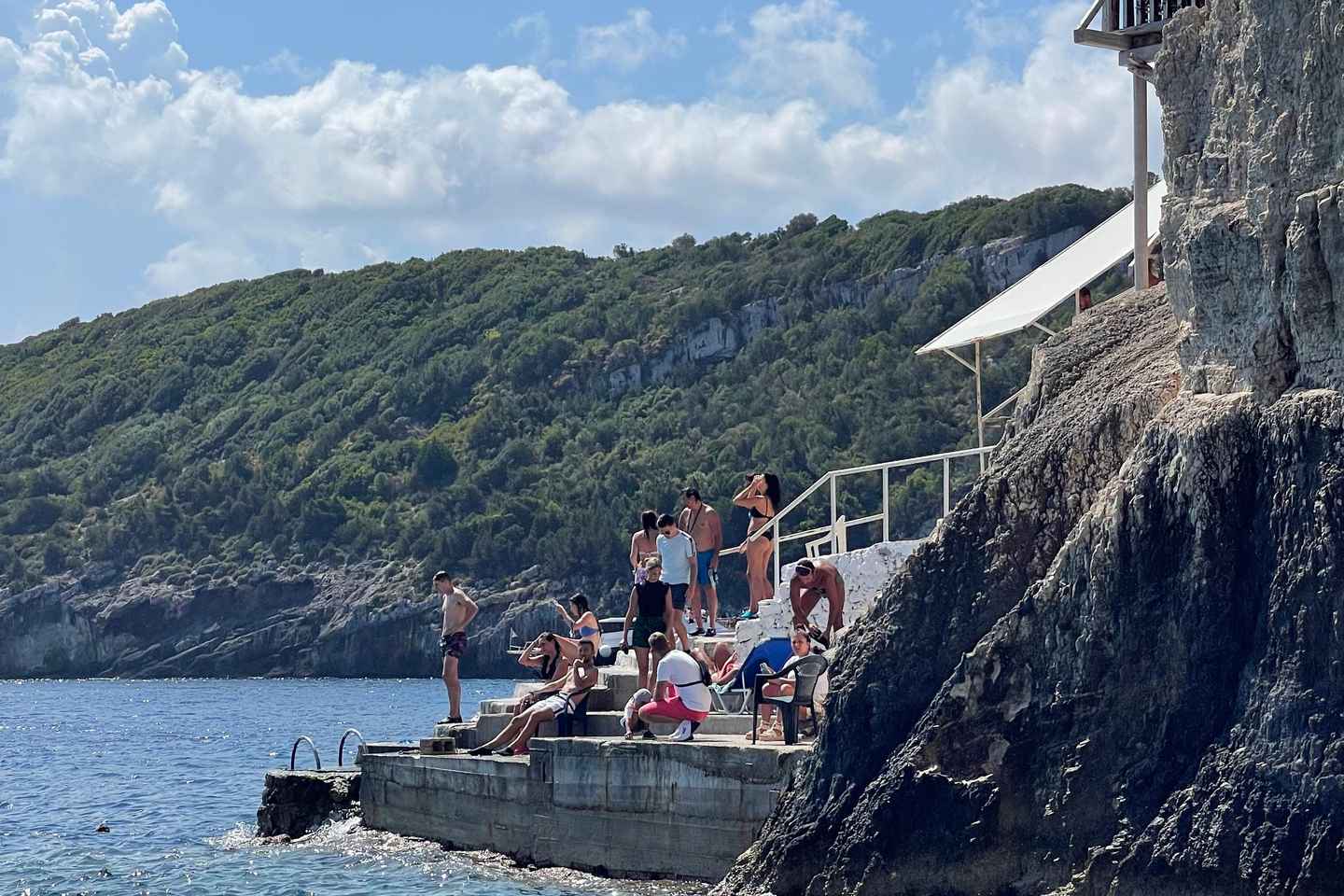 Next, board a boat for a scenic three-hour cruise across the sparkling Ionian Sea. Glide along the coast to the famed Blue Caves, where sunlight dances on turquoise waters. Enjoy two exclusive swimming stops, perfect for cooling off and experiencing the natural beauty up close. Please note, the boat tour requires a small additional fee payable to your guide.