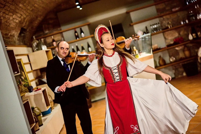 Your evening begins with a warm welcome and a complimentary drink upon arrival between 18:30 and 19:00. The Rajkó Folk Ensemble, founded in 1950, delivers an energetic performance split into two engaging 30-minute segments, separated by a short intermission to let you soak in the atmosphere.
