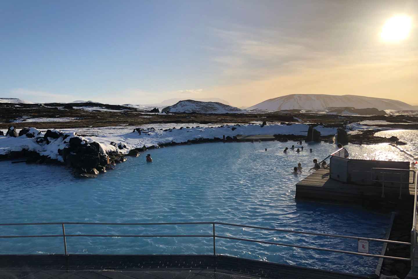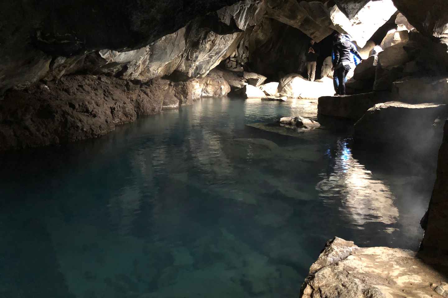 Relax at the Myvatn Nature Baths, a geothermal lagoon surrounded by lava fields. Entrance is not included, so you can choose to soak in the warm waters or unwind at the Kvika Restaurant. If you prefer, your guide can take you to explore the Grjótagjá rift and cave, a unique geological site nearby.