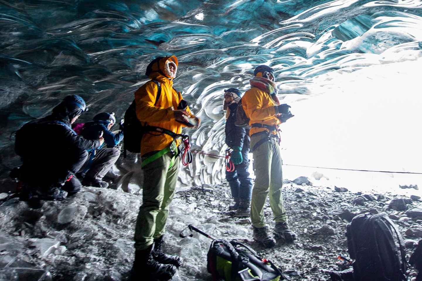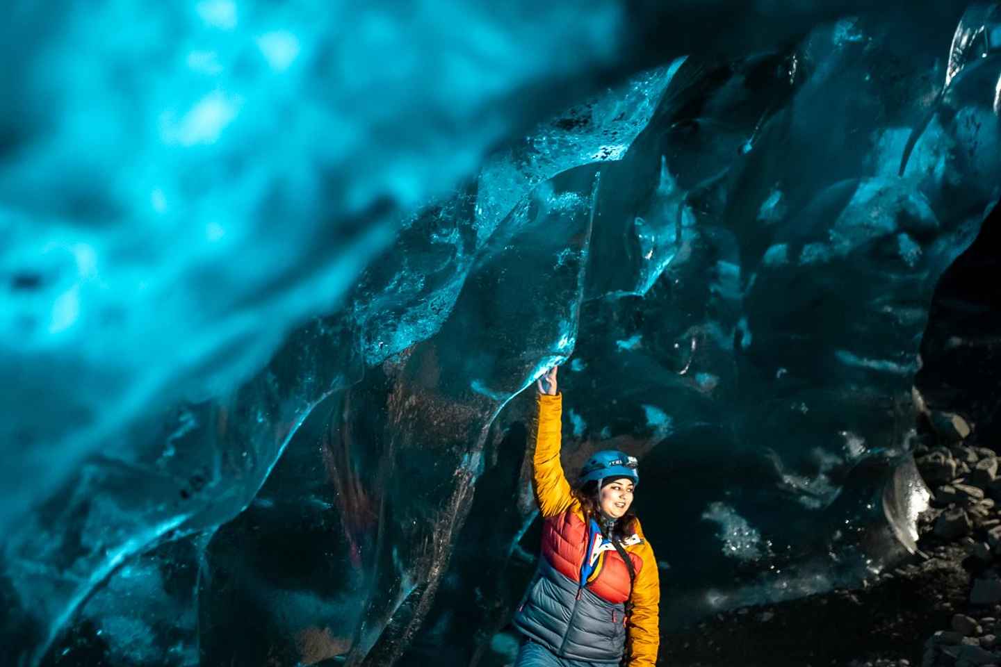 Depending on conditions, you may find yourself at the glacier’s edge or hiking up to 4 kilometers across the ice to reach the cave. Before entering, your guide will provide a safety briefing and equip you with helmets and crampons, ensuring a secure and memorable exploration.