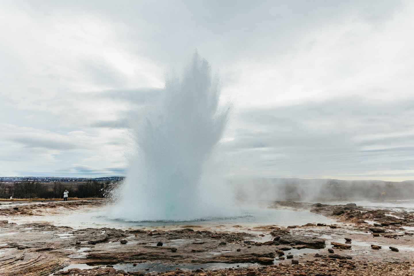 Next, witness the raw power of nature at Geysir Hot Springs. Feel the earth tremble as Strokkur geyser erupts every few minutes, sending steaming water high into the sky. Continue to Gullfoss Waterfall, where the glacial Hvítá River plunges into a rugged canyon, creating a breathtaking spectacle.