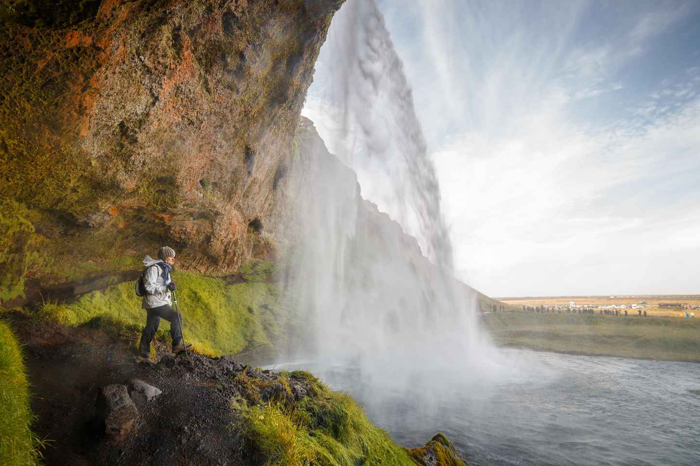 Your journey begins with a visit to Seljalandsfoss, a spectacular waterfall cascading 65 meters from the cliffs. Here, you can walk behind the curtain of water for a unique perspective, so bring your raincoat for this unforgettable experience.