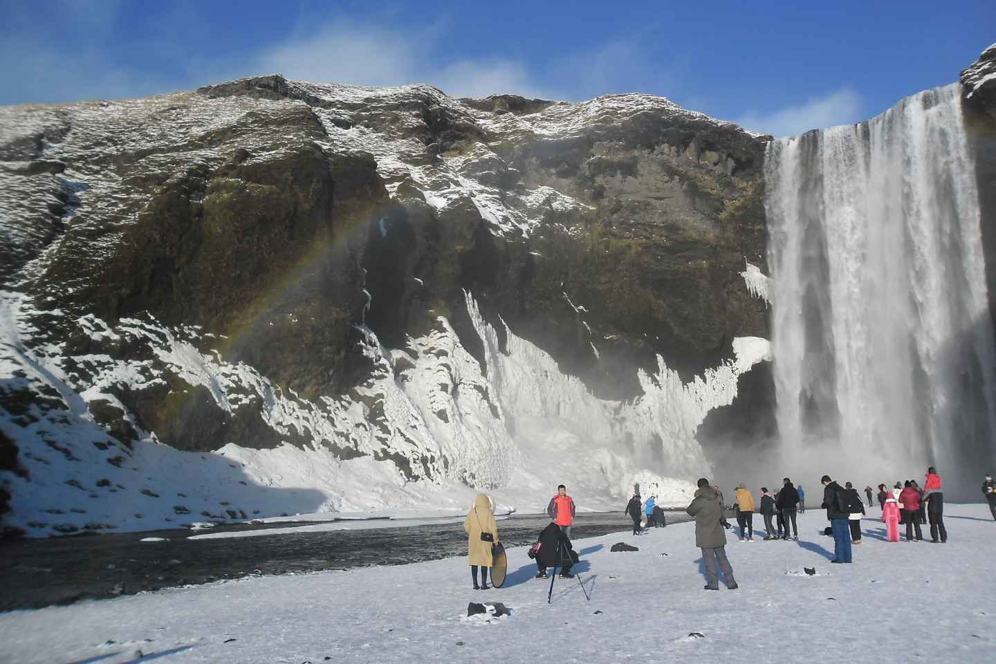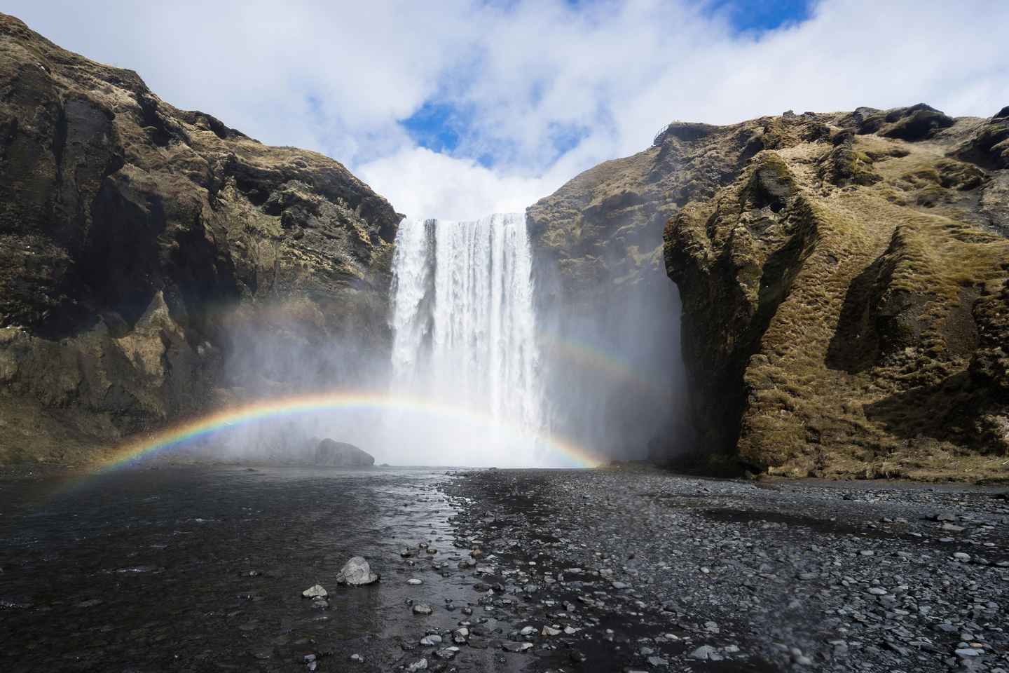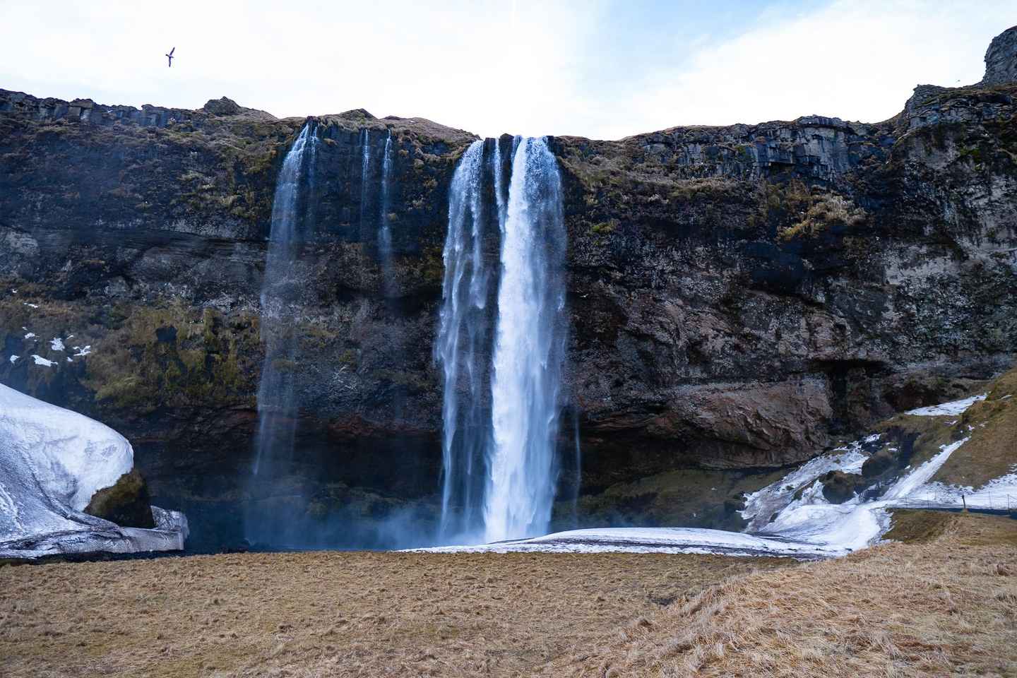 Marvel at Skogafoss, where you can climb stairs to enjoy a breathtaking view from the top. Your journey continues to the Dyrholaey rock formation, followed by a leisurely stroll along the iconic black sands of Reynisfjara. The dramatic basalt cliffs make this beach a must-see.