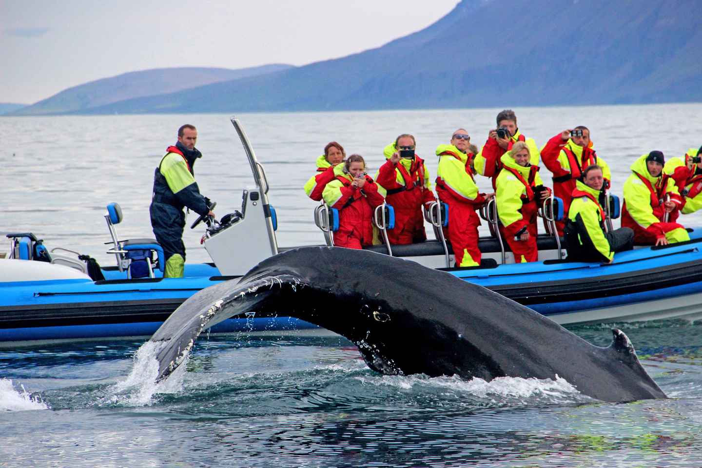 Set off from the charming town of Húsavík in Iceland for an exhilarating whale watching adventure by RIB speedboat. This guided tour takes you across the scenic Skjálfandi Bay, where you'll search for some of the ocean's most magnificent creatures in their natural habitat.