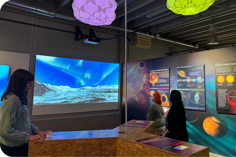 Enhance your northern lights adventure with expert tips on how to spot and photograph the aurora. Practice your skills using the interactive photo simulator and listen to QR-based audioguides to deepen your knowledge. Don’t forget to browse the boutique for local art and souvenirs or enjoy a coffee before you leave.