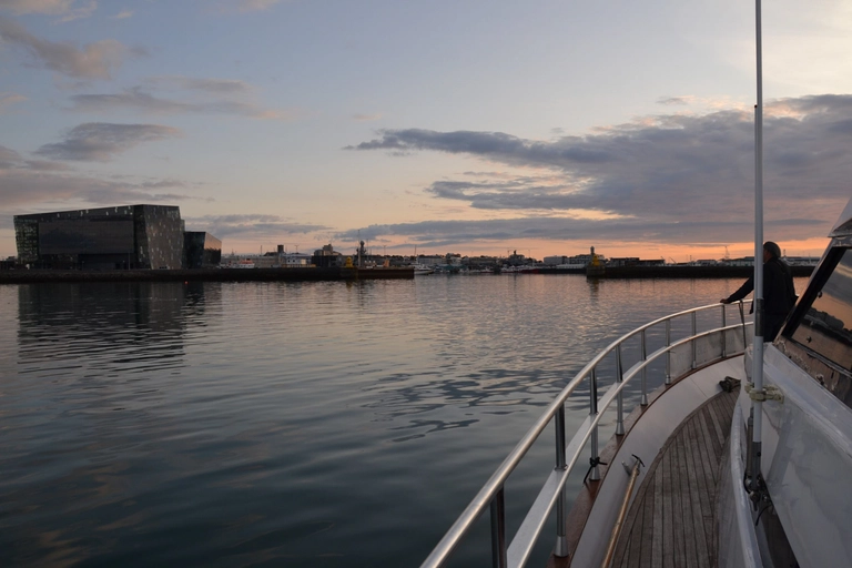 Along the journey, enjoy panoramic views of Reykjavik's landmarks such as the iconic Harpa Concert Hall and the evocative Sun Voyager sculpture. You'll also glimpse the historic Höfði house, a site of international significance, all illuminated beautifully against the night sky.