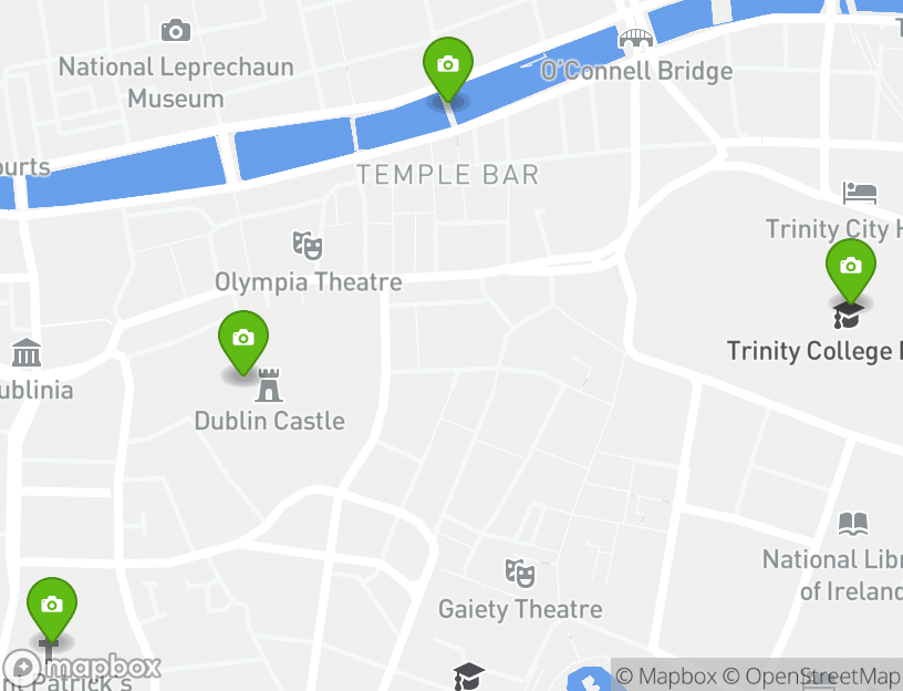 The itinerary includes stops at popular attractions such as Trinity College Dublin, Dublin Castle, St. Patrick's Cathedral, and Ha’penny Bridge.