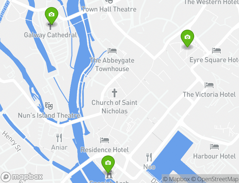 Visit the magnificent Galway Cathedral, one of the city’s most impressive landmarks. Its beautifully lit façade and serene setting invite you to pause and appreciate stunning architecture and the calm of the evening. The cathedral’s grandeur is an unforgettable highlight of your walk.