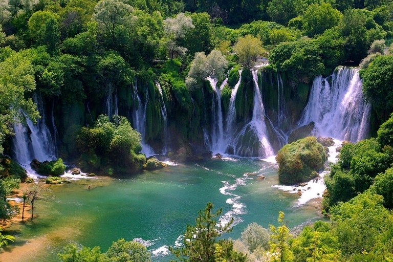 Upplifðu heillandi fegurð Bosníu-Hersegóvínu á leiðsögðu dagsferðalagi frá Dubrovník! Þessi litla hópferð leiðir þig að stórbrotnu Kravica-fossunum og hinni sögulegu borg Mostar, þar sem þú færð að njóta bæði náttúruundra og menningarsaga.