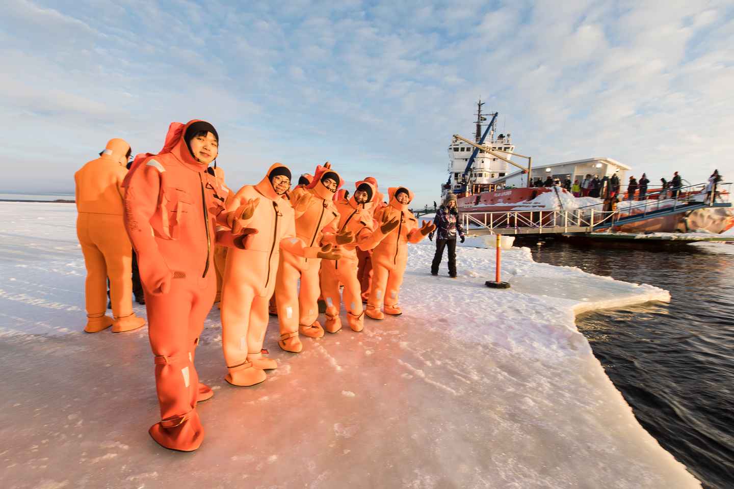 Á siglingunni getið þið upplifað einstaka tilfinningu með því að fljóta í björgunarfatnaði á kyrrlátri norðurskautshafinu og ganga örugglega á frosnu hafísnum. Kynnið ykkur skipið frá kjöli til þaks með hljóðleiðsögn á 16 tungumálum, sem eykur skilning ykkar á ísbrjótum.