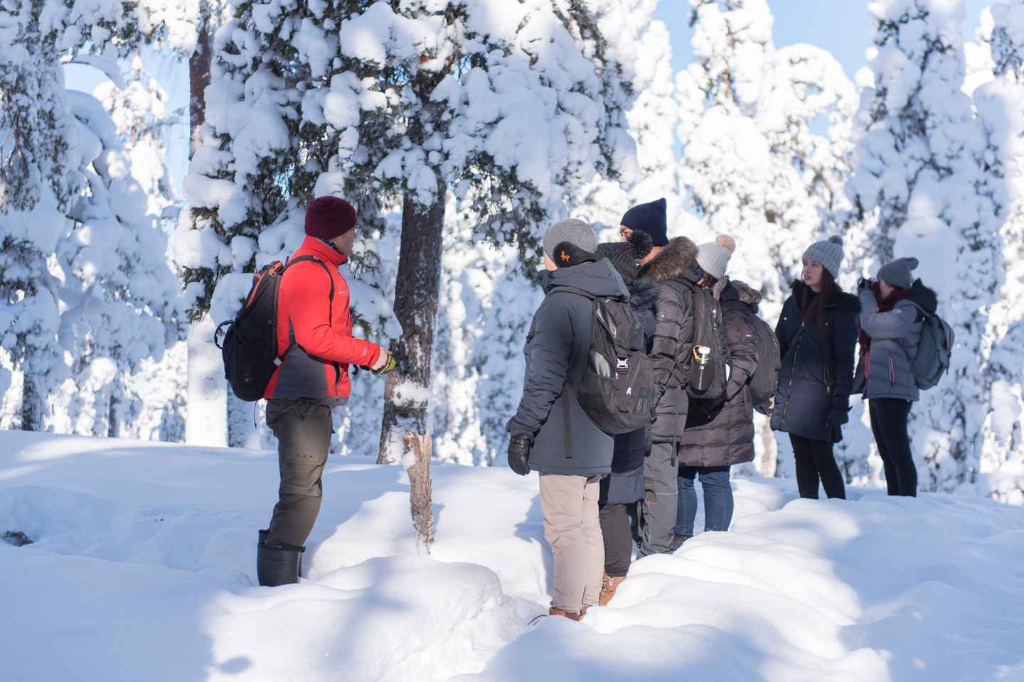 Leggðu upp í ævintýri sem sýnir náttúrufegurð Rovaniemi! Njóttu finnska óbyggðarinnar þar sem veturinn afhjúpar víðáttumikla snjóbreiður og kyrrláta, frosna tré. Með leiðsögn sérfræðings muntu læra að þekkja dýraspor í snjónum, allt frá úlfum til hreindýra, sem gerir könnunina bæði spennandi og fræðandi.
