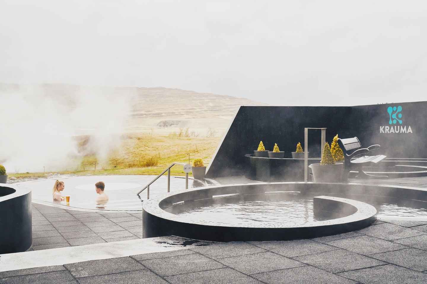 Upplifðu einstaka slökun í jarðböðum Krauma í Reykholti! Upphitað af Deildartunguhver, bjóða þessi böð upp á hlýtt skjól meðal töfrandi landslags Íslands.