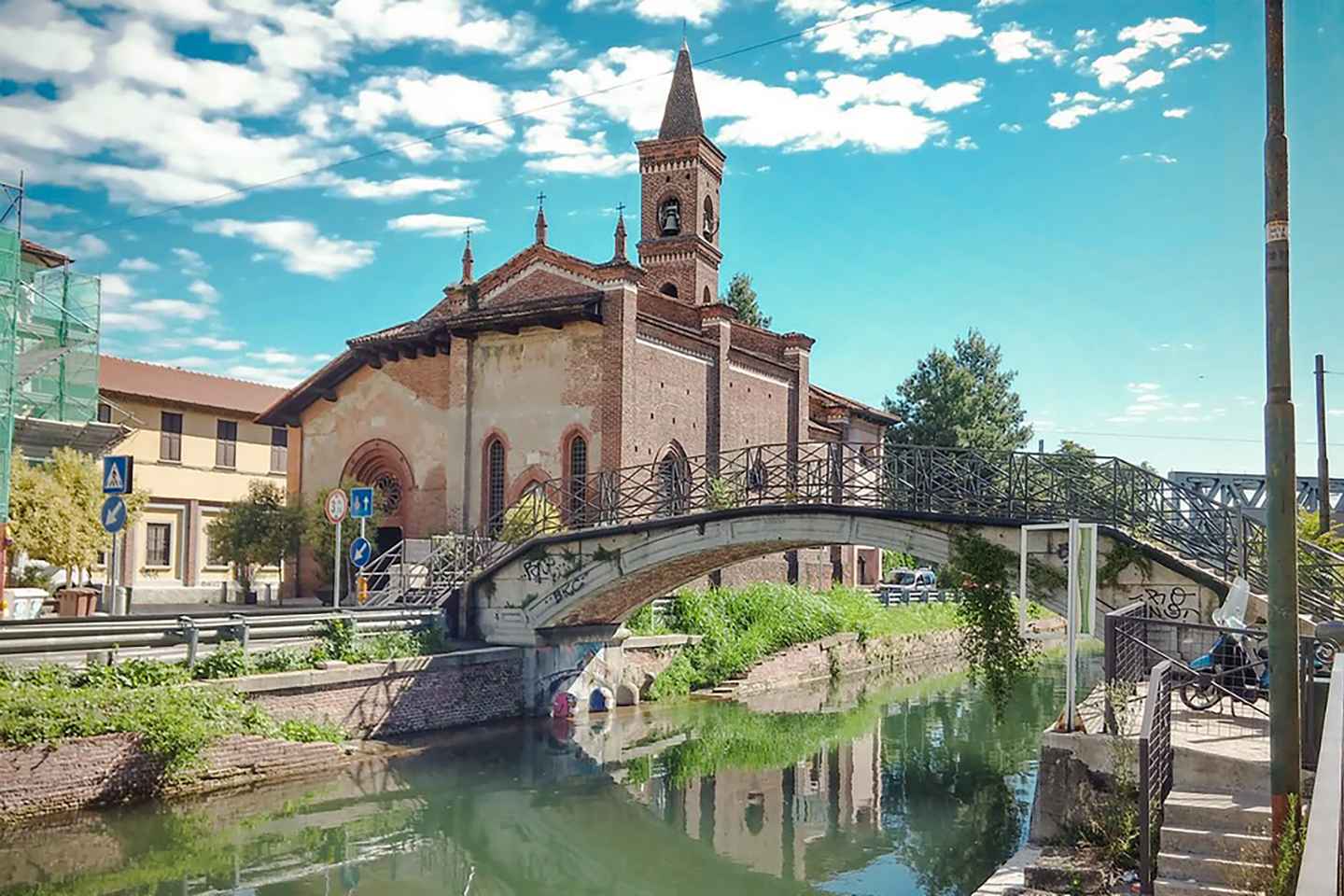 Byrjaðu ævintýrið á sögulegu síkjunum í Mílanó með rafmagnsbátsferð í háklassa! Svifðu framhjá einstöku verkamannahúsunum sem kallast "case di Ringhiera" og njóttu samspils sögulegra og nútímalegra þátta. Sigið að hinni frægu San Cristoforo kirkju frá 13. öld á meðan þið hlustið á upplýsandi leiðsögn um ríka fortíð borgarinnar.