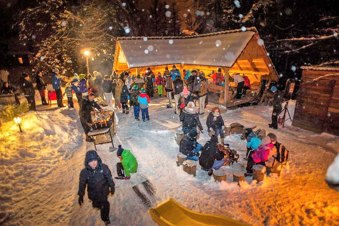 Eftir ferðina geturðu hlýtt þér við skála fjallabúa. Safnastu saman við notalegan varðeld og smakkaðu á staðbundnum kræsingum eins og Bacowski Bigos, Oscypki með trönuberjum og grilluðum pylsum. Njóttu heits te eða eplasafa á þessum fallega fjallastað.