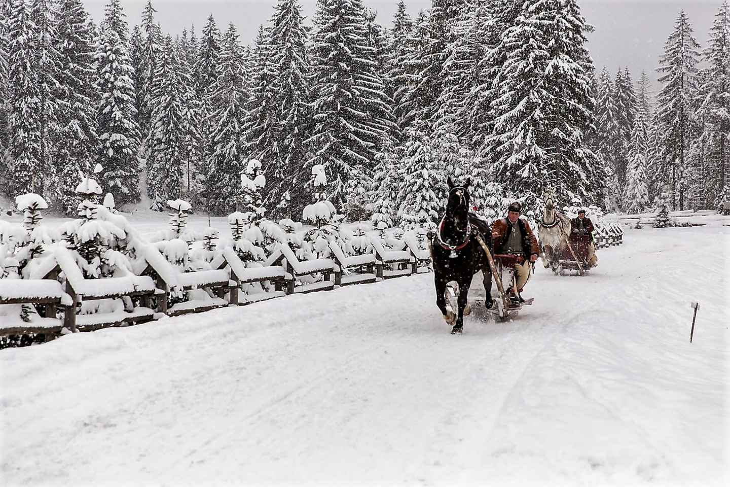 Njóttu hefðbundinnar háfjalla sleðaferðar þar sem þú svífur framhjá hvítklæddum trjám í kyrrlátu umhverfi, laus við borgarhávaða. Hljóð bjöllanna bætir við þetta stórkostlega vetrarlandslag og gerir það eftirminnilegt fyrir alla.