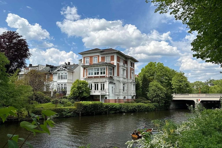 Láttu þig dreyma við Alsterskurðina sem eru umkringd hvítum villum, og njóttu stórfenglegs útsýnis yfir skylínu Hamborgar, þar sem Alster gosbrunnurinn og Elbphilharmonie tónlistarhöllin skera sig úr. Þessi þriggja tíma leiðsögn er bæði afslappandi og fræðandi, full af skemmtilegum sögum og húmor.