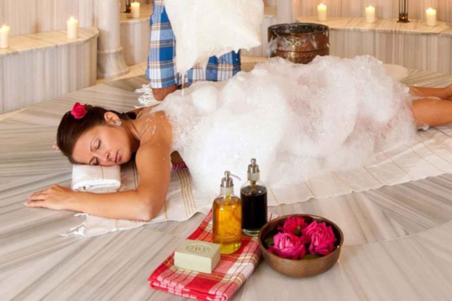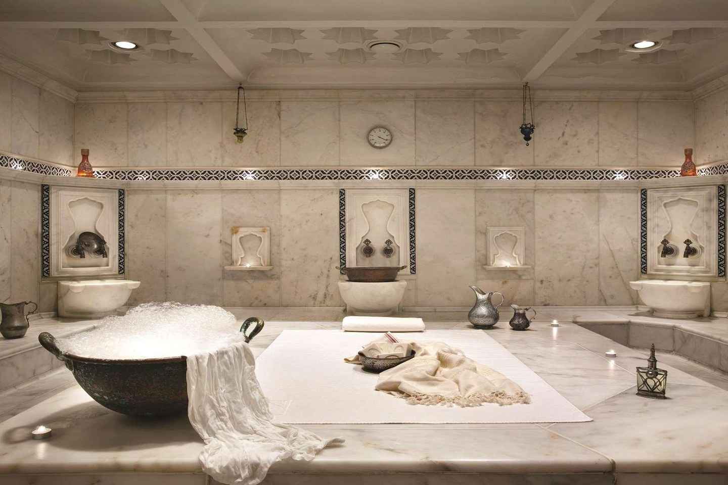 Því næst geturðu notið hefðbundins tyrknesks baðs, eða hammam, sem byggir á hefðum Ottómana og Rómverja. Upplifðu endurnærandi gufubað sem hreinsar og slakar á bæði líkama og sál, og býður upp á einstaka menningar- og félagslega upplifun í spa-umhverfi.