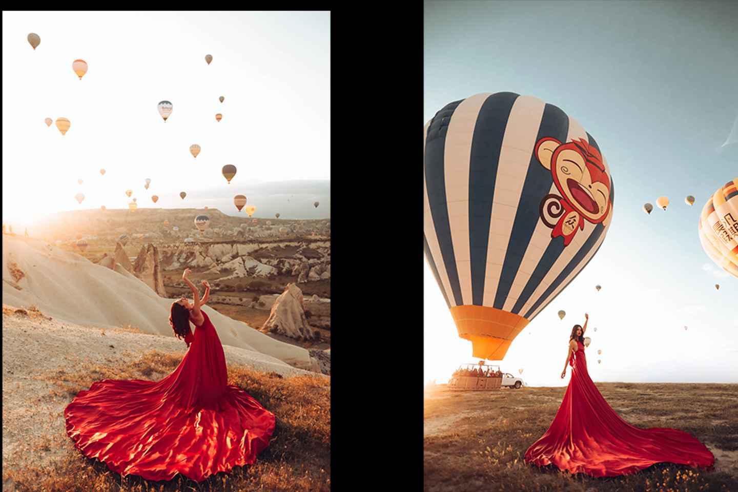 Sökkvið ykkur í stórkostlegu landslagi Kappadókíu með okkar einstöku ljósmyndatöku í töfrandi blöðrufylltum himnunum! Þetta er fullkomin upplifun til að fanga ógleymanlegar minningar með svipmóti hinna frægu ævintýraskorsteina og stórfenglegra víðátta.