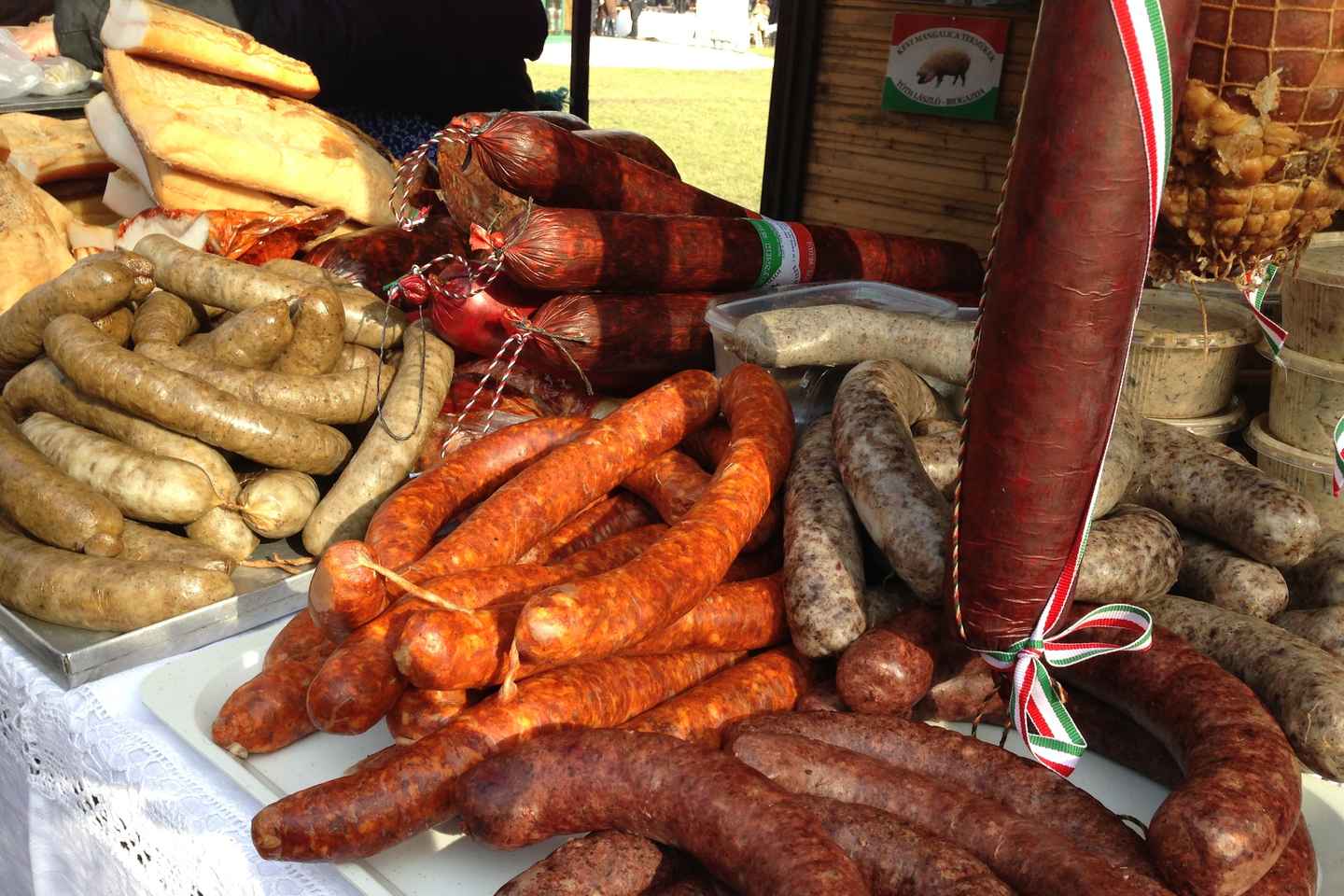 Láttu þig heilla af bragðgóðri ferð um matarmenningu Budapest! Byrjaðu í hinum fræga Central Market Hall, þar sem þú getur dáðst að úrvali ferskra matvæla á meðan þú lærir um áhugaverða sögu markaðarins. Uppgötvaðu hvernig heimamenn nota einstök hráefni eins og svínfitu, papriku og gæsarlifur, sem dýpkar skilning þinn á ungverskri matarmenningu.
