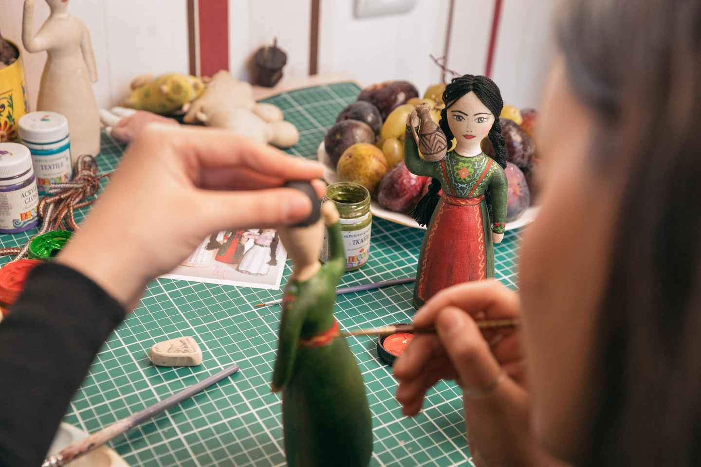 Inizia il tuo percorso artistico disegnando il tuo progetto preferito sulla bambola, selezionando colori che rispecchiano il tuo stile personale. Impara le antiche tecniche di pittura in miniatura armena mentre il tuo ospite ti aiuta a dare vita alla tua creazione.