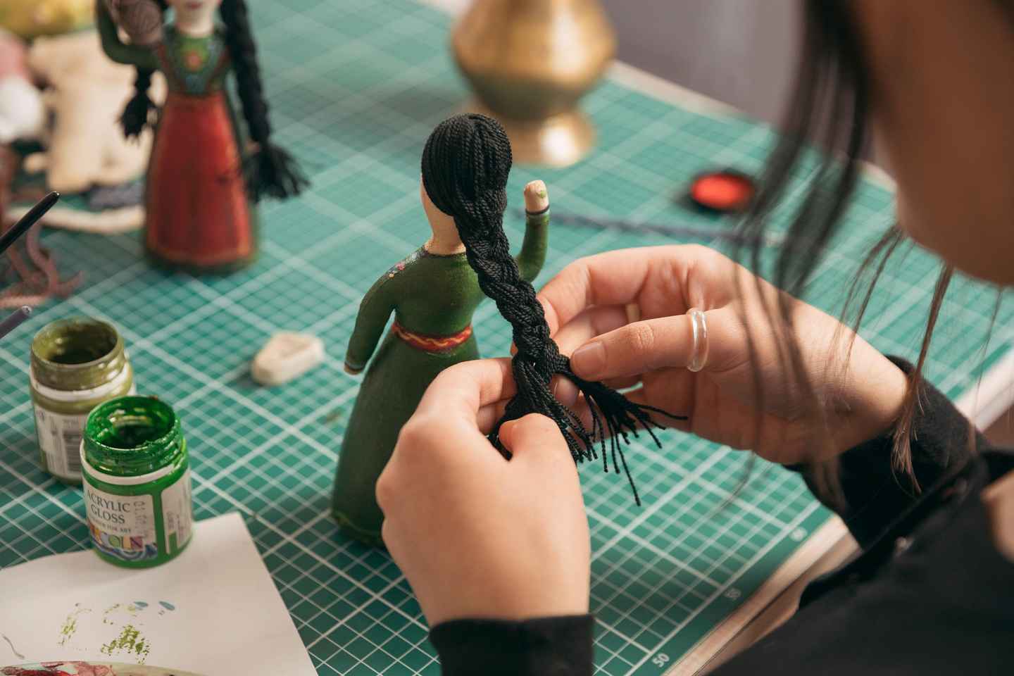 Mentre aspetti che il tuo capolavoro si asciughi, arricchisci l'aspetto della tua bambola realizzando accessori su misura. Progetta cinture, cappelli e gioielli che completano la tua bambola, assicurandoti che ogni dettaglio sia unicamente tuo.