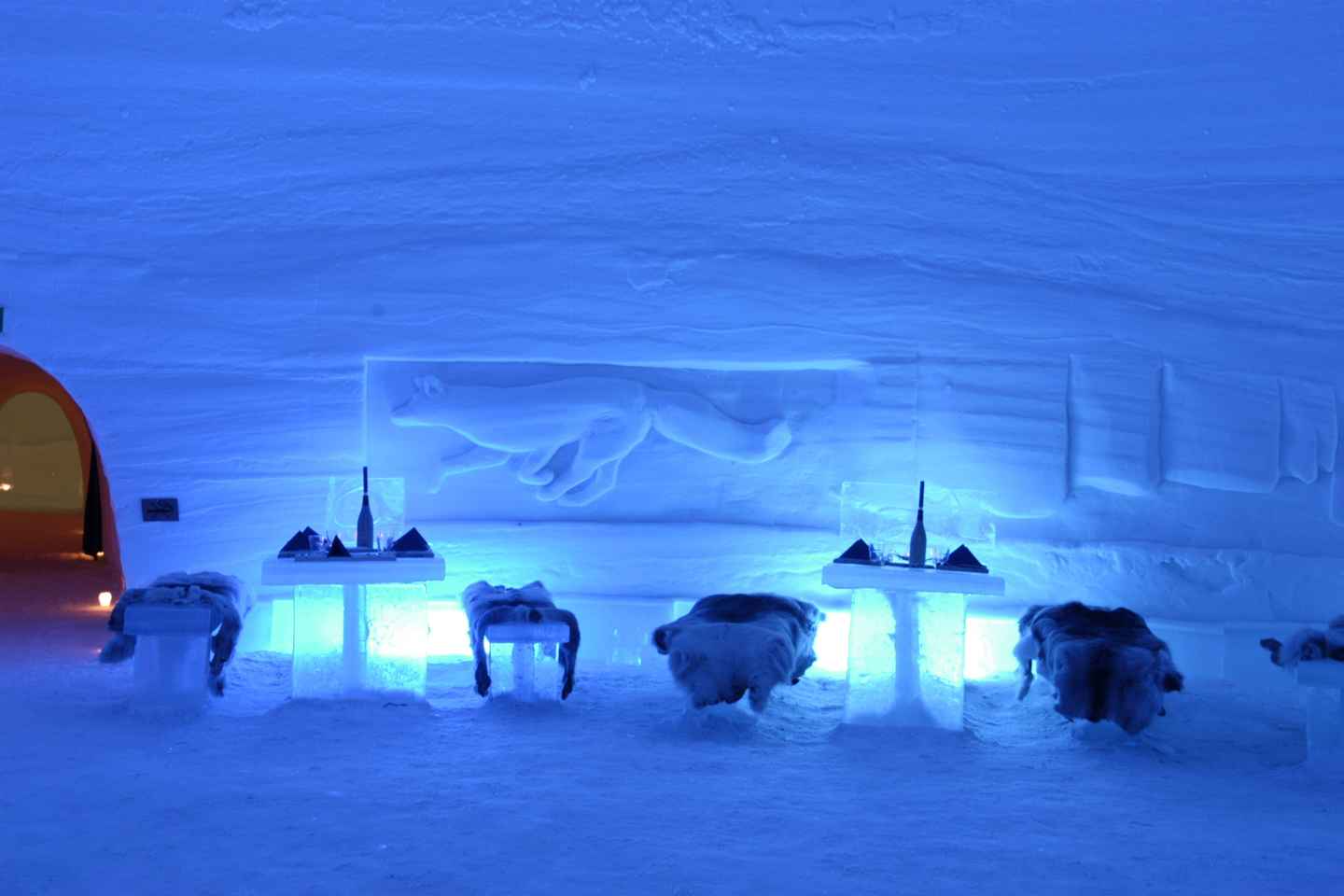 Ammira il ristorante e la cappella, straordinarie costruzioni di neve situate nel cuore dello Snow Village. Queste strutture eccezionali offrono una rara combinazione di bellezza e maestria artigianale. Dopo l'esplorazione, goditi una bevanda calda e una deliziosa ciambella nel ristorante accogliente, per un momento perfetto di relax.