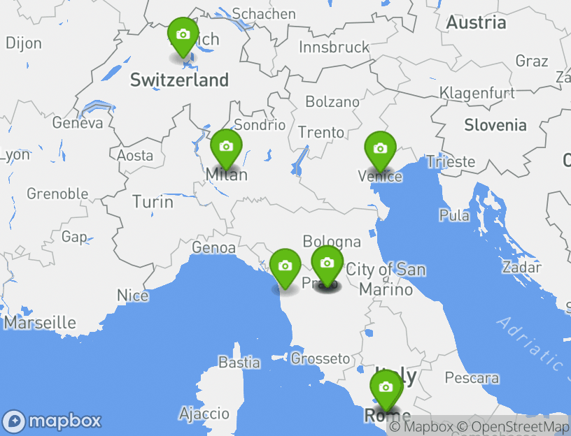 Tour in veicolo ti porterà alla scoperta di diversi luoghi famosi. Tra le mete più votate incluse in questo tour: Chapel Bridge, Milano Centrale, Duomo di Milano, Galleria Vittorio Emanuele II e Basilica di San Marco. L'intera esperienza dura circa 7 days.
