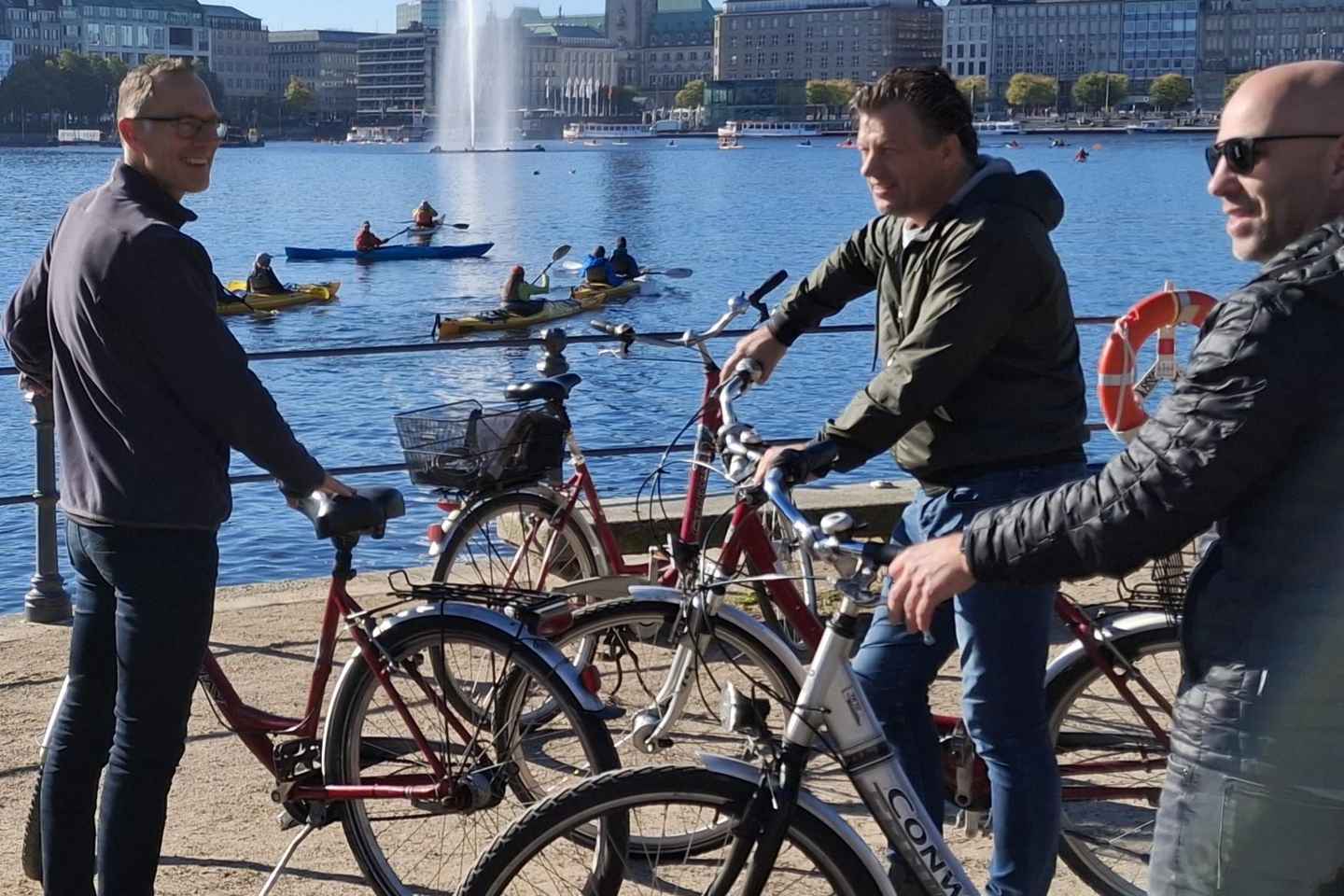 Scopri il cuore pulsante di Amburgo con un tour guidato in bicicletta attraverso i suoi quartieri più iconici! Inizia il tuo viaggio nel pittoresco quartiere di Rotherbaum, dove potrai pedalare lungo i tranquilli laghi Außenalster e Binnenalster, ammirando il suggestivo panorama della città.