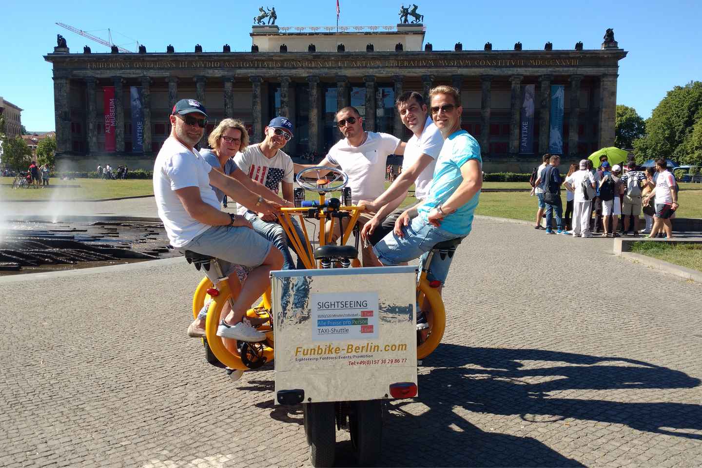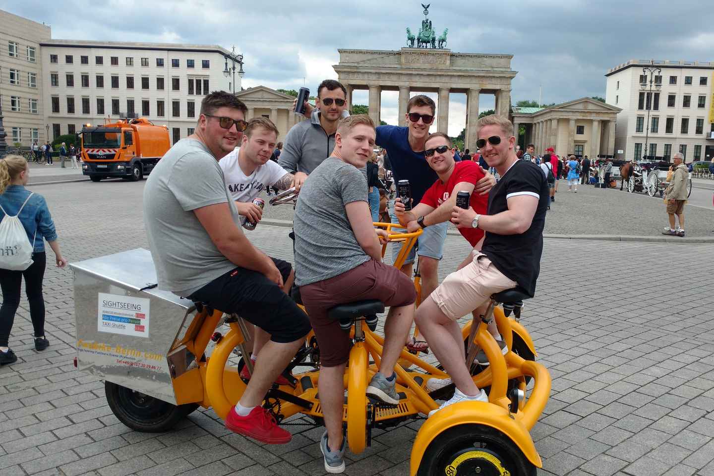Intraprendi un affascinante viaggio attraverso i monumenti storici di Berlino con il nostro tour privato guidato a bordo di bici da conferenza per più persone! Partendo dal celebre Porta di Brandeburgo, pedalerai senza sforzo per la città grazie all'assistenza di un motore elettrico.