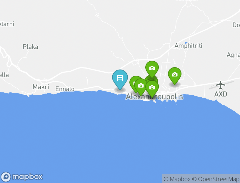 L'aeroporto più vicino è Internazionale di Alessandropoli e si trova a 10.0 km dalla tua sistemazione.