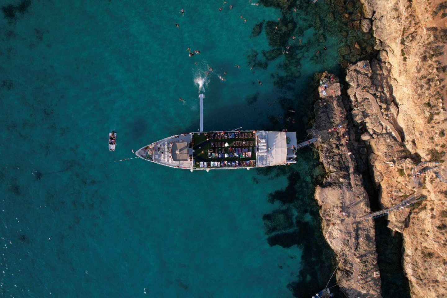Durante la crociera, goditi il comfort di un bar completo e deliziosi piatti a bordo. Naviga oltre luoghi iconici come l'Isola di San Paolo e la Baia di Ghadira, immergendoti nella bellezza naturale e nelle formazioni rocciose uniche lungo il percorso.