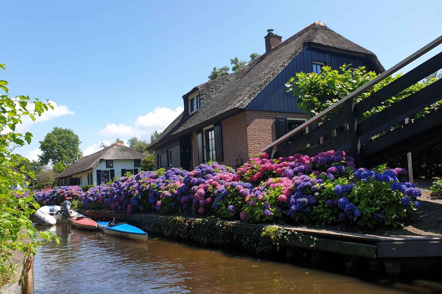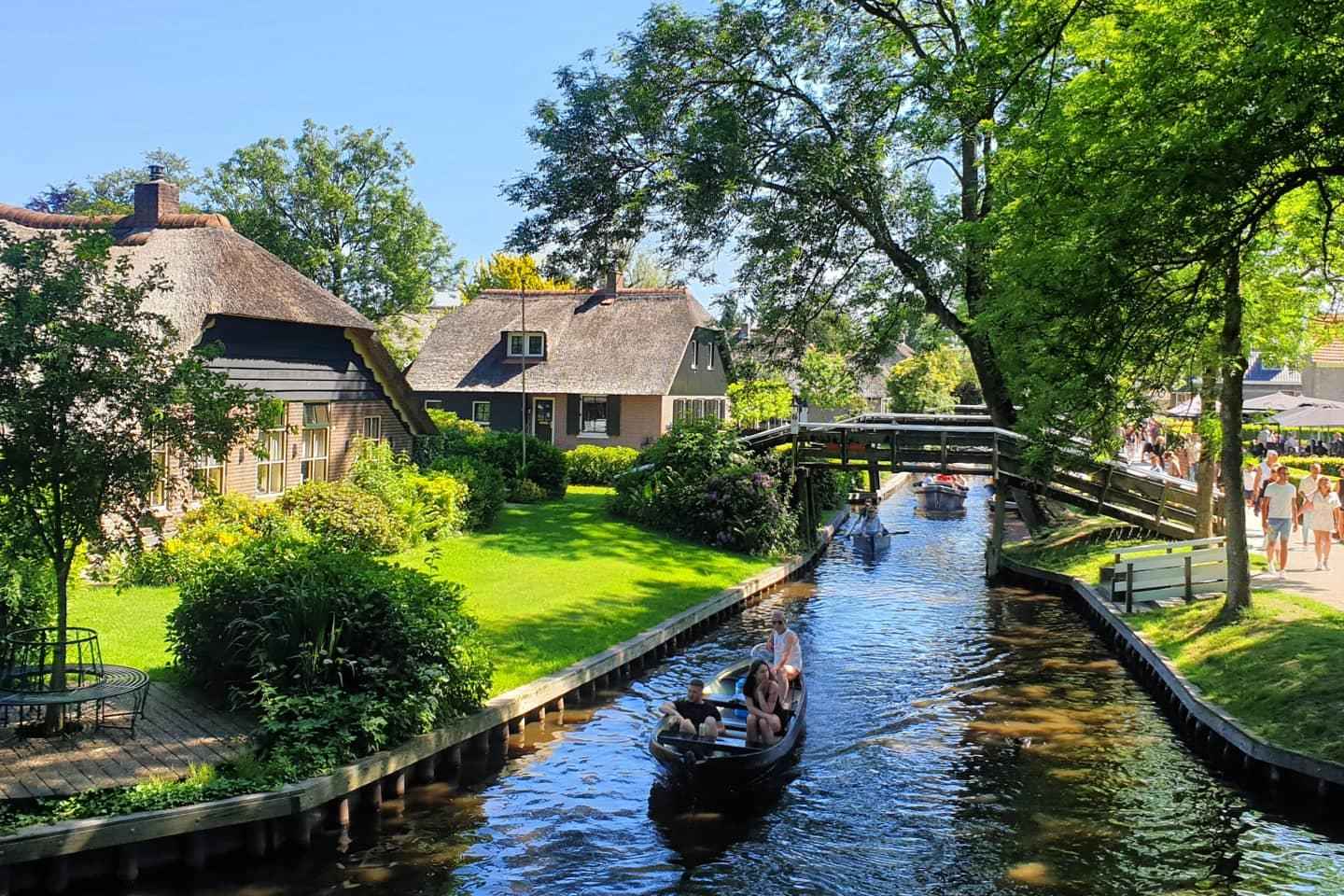 Una volta a terra, esplora i sentieri pedonali e ciclabili di Giethoorn. Ammira le fattorie splendidamente conservate, adagiate su piccole isole, e scopri il fascino del villaggio attraversando oltre 180 ponticelli caratteristici.