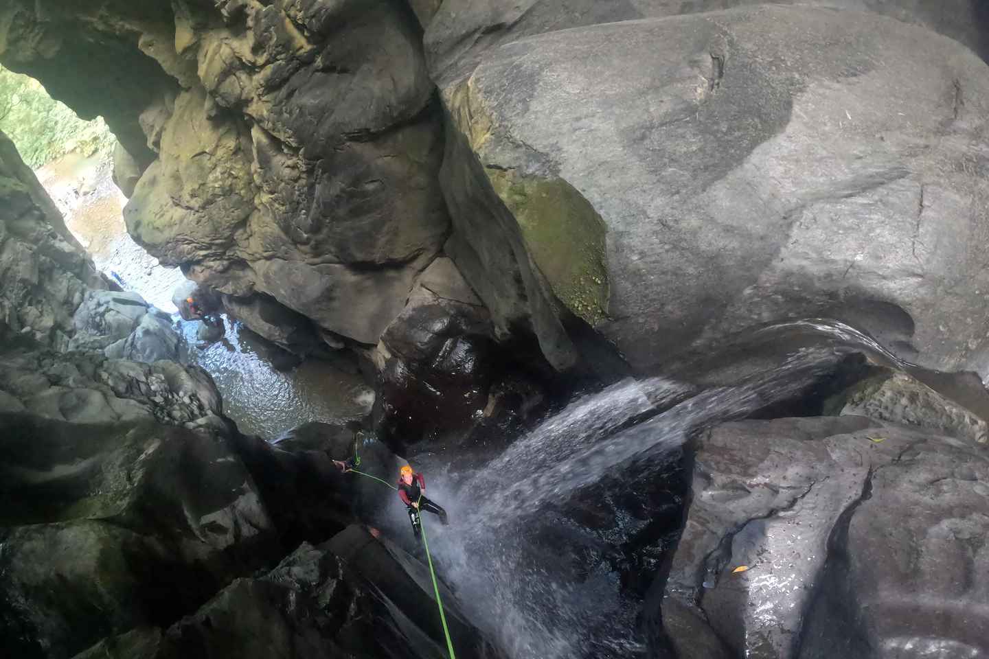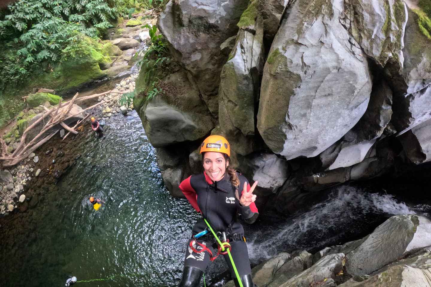 Inizia la tua avventura con un briefing sulla sicurezza e una passeggiata panoramica di 30 minuti fino al sito di canyoning. Preparati per una discesa mozzafiato attraverso cascate scroscianti, circondato dalla natura rigogliosa di quest'area vulcanica.