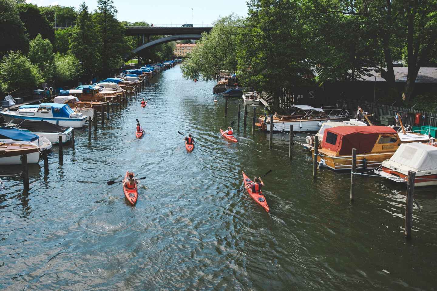 Scivola attraverso i canali di Stoccolma, ammirando punti di interesse come il Municipio e la suggestiva Città Vecchia. Traccia il tuo percorso intorno alle isole di Långholmen e Reimersholme, godendo di un'esperienza di esplorazione pacifica e personale. Scegli tra un kayak singolo o doppio per condividere l'avventura con un amico.
