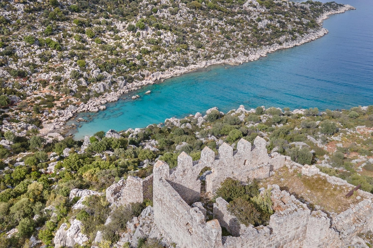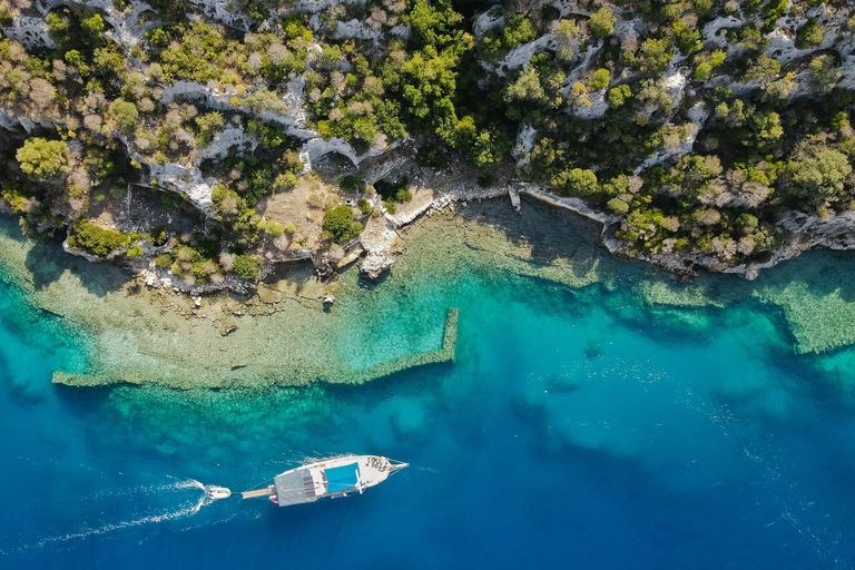Immergiti nelle invitanti acque della Baia dell'Acquario e goditi una nuotata rinfrescante. Naviga oltre la storica Città Sommersa di Kekova, ammirando le antiche rovine sommerse a causa di un terremoto del II secolo.