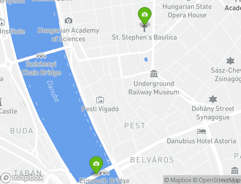 L'attività parte da Rumbach Sebestyén u. 10. Durante la visita, vedrai alcune delle principali attrazioni locali. Tra le tappe più importanti incluse in questo itinerario, St. Stephen’s Basilica (Szent István Bazilika), Chain Bridge (Széchenyi Lanchid), and Budapest Danube River. Nelle vicinanze, a Budapest, troverai alcune delle mete turistiche locali più famose.