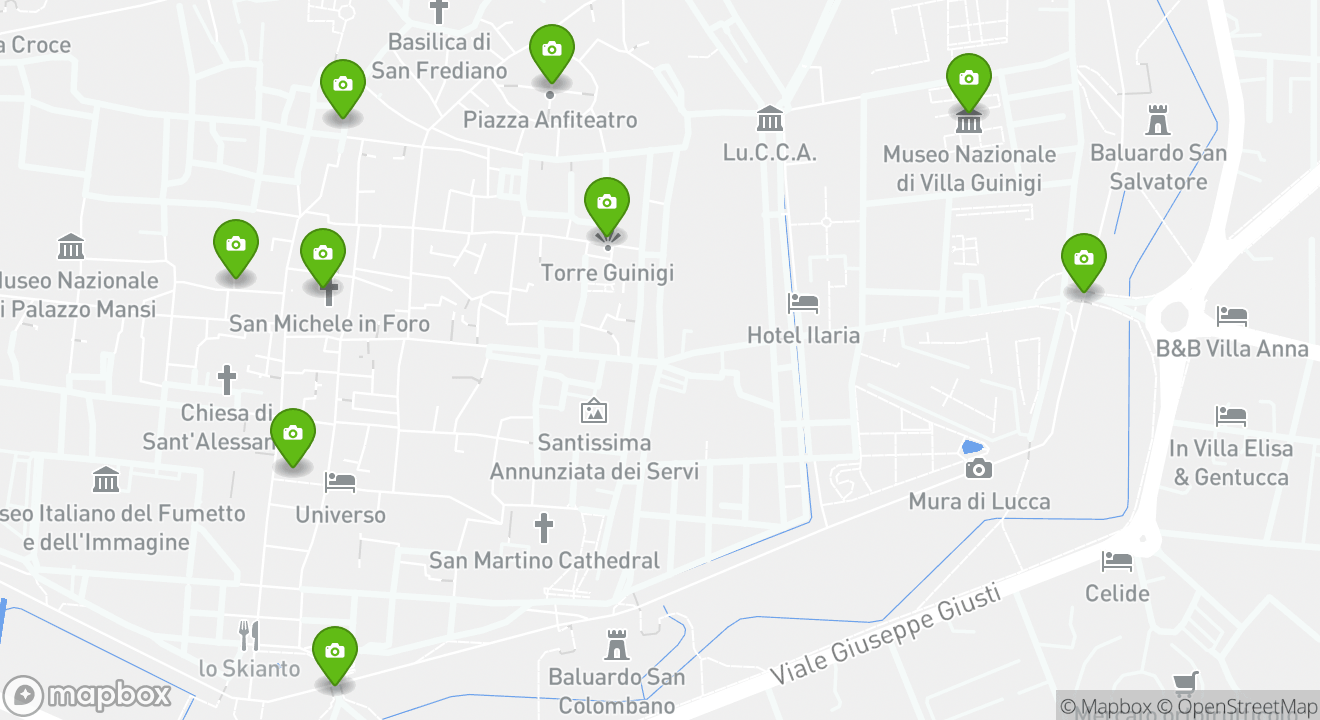 Your next adventure is waiting for you in the city of Lucca. Explore the map to discover all the popular attractions you’ll visit on your unforgettable vacation in Italy.