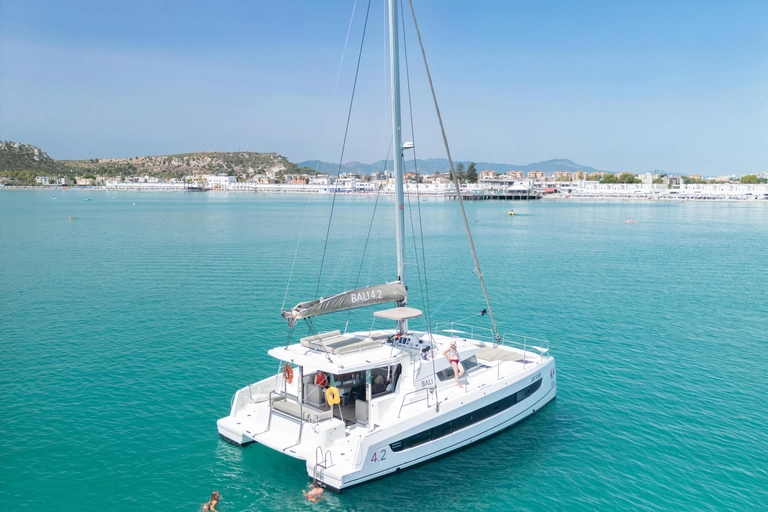 Experience an enchanting 3-hour catamaran cruise along the scenic coastline of Cagliari, Sardinia. Departing from Su Siccu marina, you’ll sail towards the shimmering waters of Poetto Beach. Along the way, marvel at the striking Sella del Diavolo, one of Cagliari’s most iconic natural landmarks.