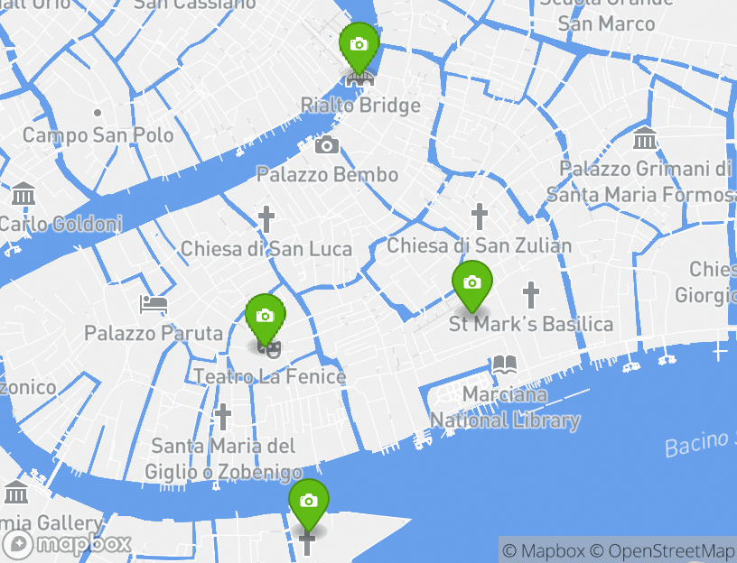The starting point for this walking tour is located in Venice. The exact address is Piazza San Marco, 30124 Venezia VE, Italy. The endpoint of the tour is located at San Polo, 3072, 30125 Venezia VE, Italy.
