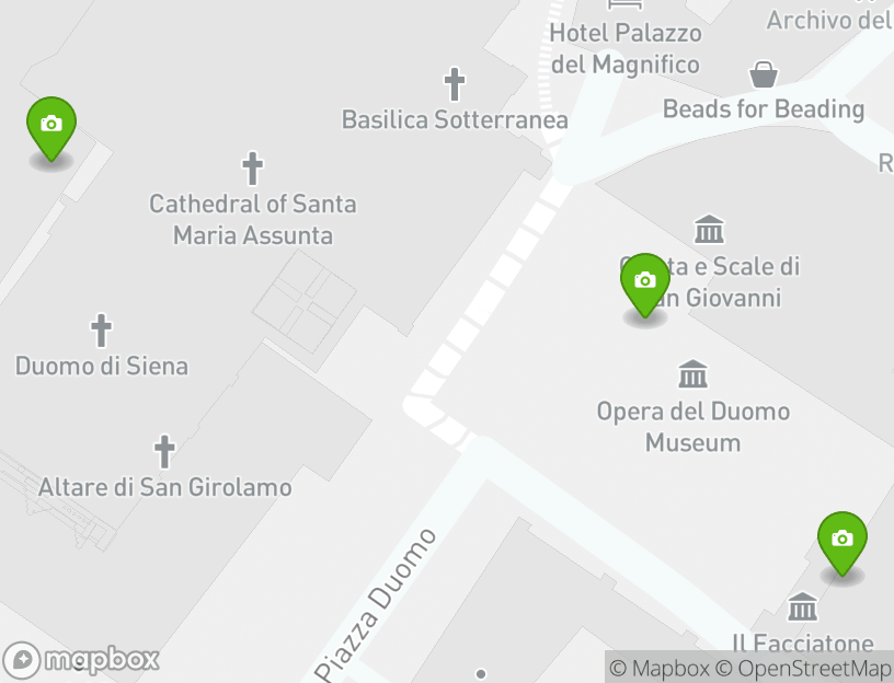 Visit the Museo dell'Opera to admire Gothic sculptures and Renaissance paintings, then discover the Diocesan Museum of Religious Art in the Oratory of San Bernardino. Cap off your visit by climbing to the Facciatone viewpoint for sweeping views of Siena and the Tuscan countryside.