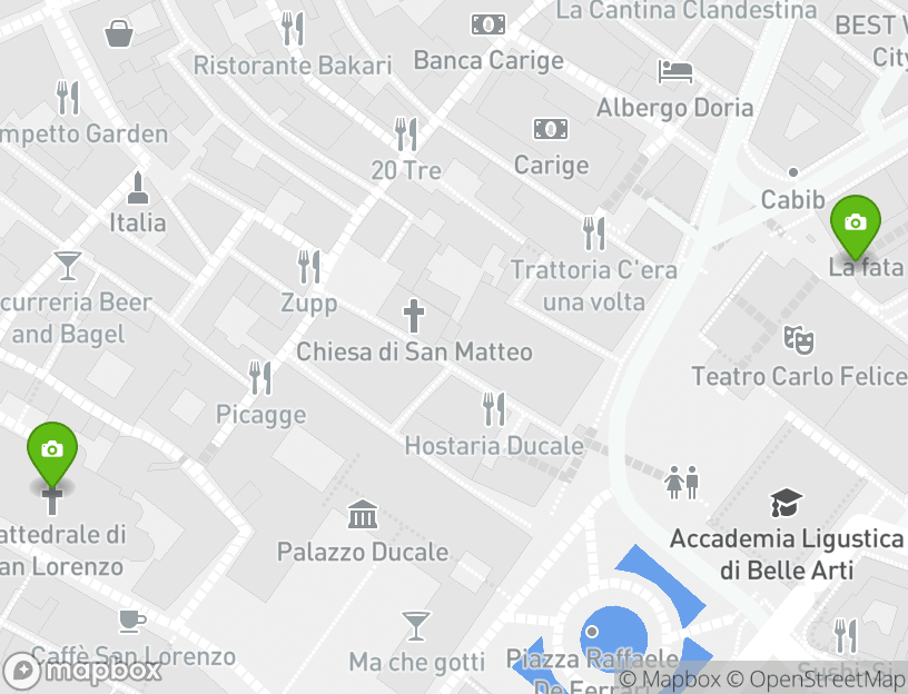 The starting point for this historical tour is located in Genoa. The exact address is 16134 Genoa, Metropolitan City of Genoa, Italy. The endpoint of the tour is located at Via Malta, 59, 16121 Genova GE, Italy.