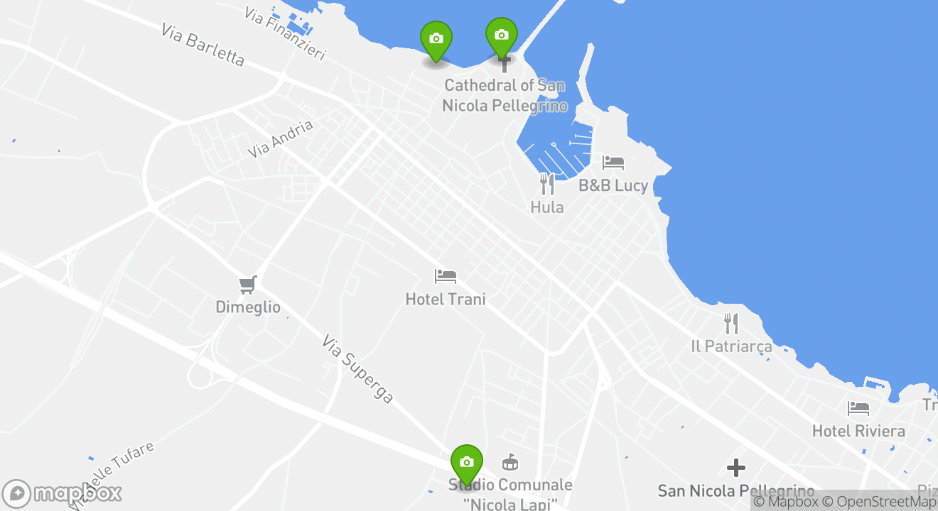 Take a closer look at the city map below for the exact locations of all the top attractions in Trani.