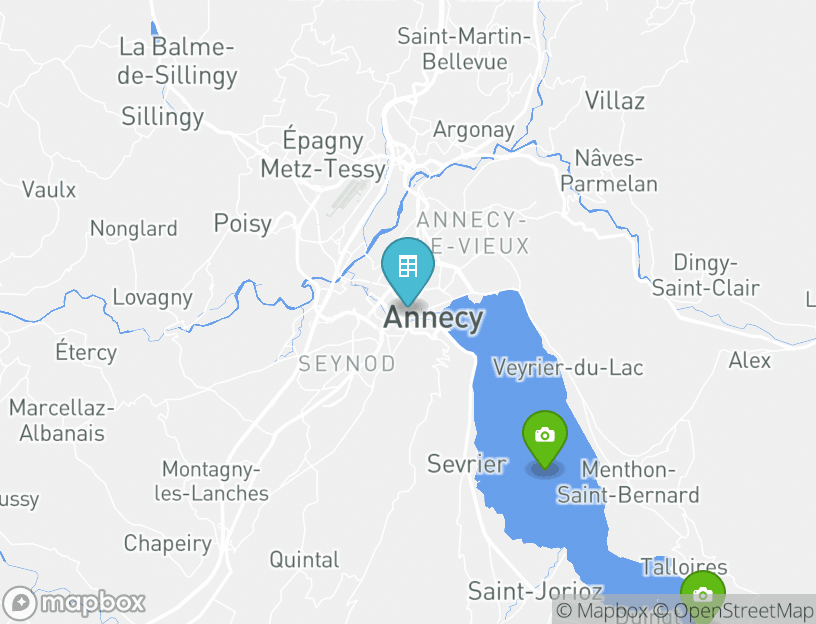 宿泊先からは近隣の多くの人気観光スポットへ簡単に行くことができます。アヌシー湖はわずか5.7kmの距離にあり、現地で非常に人気の観光スポットなので滞在時にはぜひ足を運んでみましょう。