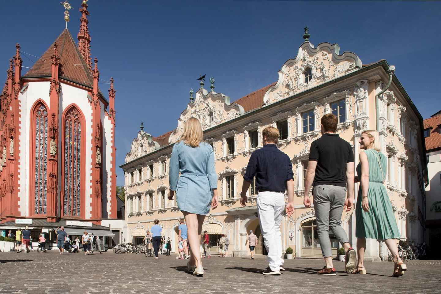 ヴュルツブルクの豊かな歴史を発見する魅力的なガイド付きウォーキングツアーに参加しましょう!賑やかなマルクト広場から冒険を始め、市の活気ある過去の物語に浸ります。ファルケンハウスの繊細なロココ調のファサードや聖マリア礼拝堂のゴシック様式の芸術に驚嘆してください。