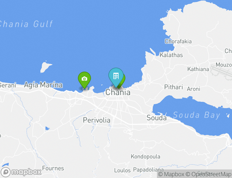 宿泊先からは近隣の多くの人気観光スポットへ簡単に行くことができます。ハニアの旧ヴェネツィア港はわずか0.2kmの距離にあり、現地で非常に人気の観光スポットなので滞在時にはぜひ足を運んでみましょう。オールド ハニア マーケットも、この地域で人気の観光スポットで、宿泊先から0.5kmの距離にあります。