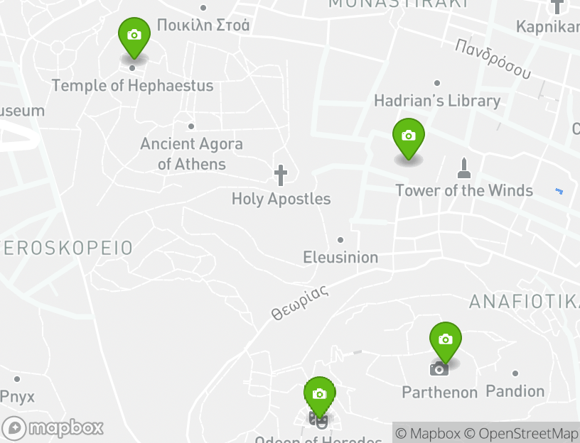 Tower of the Winds, Fethiye Mosque, Hadrian's Library, Acropolis Museum (Museo Akropoleos), and Herakleidon Museumといった名所の側を通るので、ツアー中に人気スポットを垣間見る貴重な機会があります。