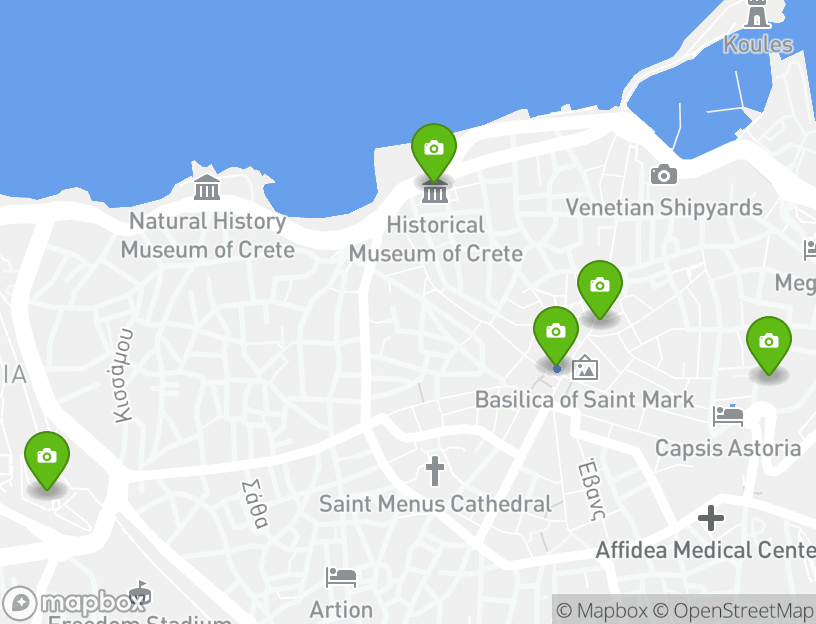 このアクティビティの出発地点はecobikegreece.grです。探索の途中で、地元の人気アトラクションのいくつかを見ることができます。この旅程のハイライトにはVenetian Walls, Georgiadis Park, Heraklion Archaeological Museum, Koules Fortress, and St. Titus Church (Church of Agios Titos)などがあります。近くのイラクリオンには、地元でベストの観光デスティネーションがいくつかあります。Lions Square & Morosini Fountain, Loggia, Historical Museum of Crete, and Kornarou Squareなどは、見逃せない人気スポットです。